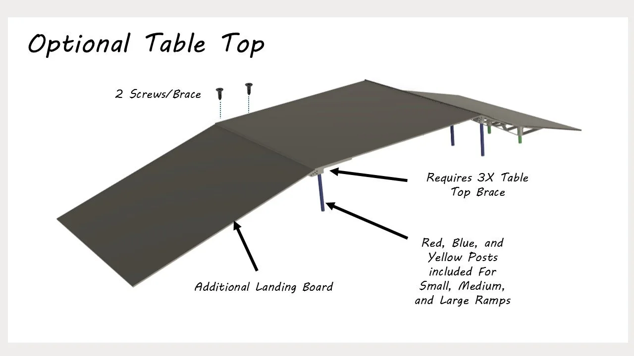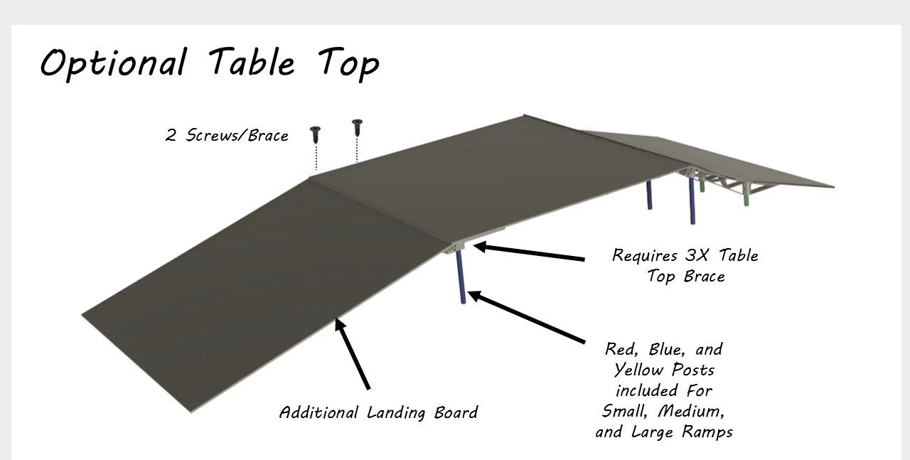 Categories: All Ramps Replacement Parts All | Ramps | Replacement Parts | Large Ramp Kit $50.95 Add To Cart Added! Medium Ramp Kit $45.95 Add To Cart Added! Small Ramp Kit $39.95 Add To Cart Added! Add-On Table Top Kit $25.95 Add To Cart Added! Ramp Truss Replacement $10.95 Add To Cart Added! Table Top Truss Replacement $8.95 Add To Cart Added! Ramp Face Board Replacement from $6.95 Select Size Small 12x24 Medium 18x24 Large 24x24 Large Extra Long 24x30 Add To Cart Added! Landing Board Clip Replacement $1.50 Add To Cart Added!